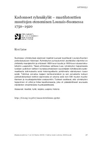 Kadonneet ryhmäkylät ‒ maatilatonttien muuttojen eteneminen Lounais-Suomessa 1750‒1920