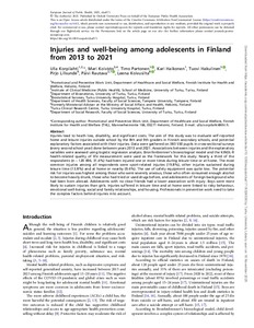 Injuries and well-being among adolescents in Finland from 2013 to 2021