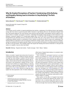 Why Do Student Perceptions of Teachers’ Condemning of the Bullying and Empathy-Raising Lead to Intention to Stop Bullying? The Role of Emotions