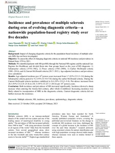 Objective: To assess the effect of changing diagnostic criteria on national MS incidence and prevalence in Finland from 1974 to 2021.