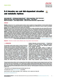 Objective: Interleukin-6 (IL-6) is a pleiotropic cytokine involved in immune regulation and energy metabolism. Its diurnal secretion influences core circadian components, emphasizing its critical role in circadian biology. Despite known sex differences in immune, circadian, and metabolic processes, how IL-6 integrates these processes remains poorly understood.