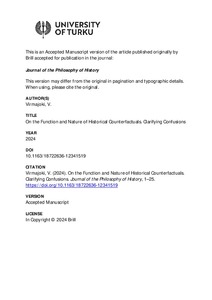On the Function and Nature of Historical Counterfactuals. Clarifying Confusions