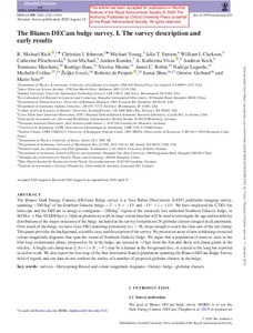 The Blanco Dark Energy Camera (DECam) Bulge survey is a Vera Rubin Observatory (LSST) pathfinder imaging survey, spanning similar to 200 deg(2) of the Southern Galactic bulge, -2 degrees < b < -13 degrees and -11 degrees < l < +11 degrees. We have employed the CTIO-4m telescope and the DECam to image a contiguous similar to 200 deg(2) region of the relatively less reddened Southern Galactic bulge, in SDSS u + Pan-STARRSgrizy. Optical photometry with its large colour baseline will be used to investigate the age and metallicity distributions of themajor structures of the bulge. Included in the survey footprint are 26 globular clusters imaged in all passbands. Over much of the bulge, we have Gaia DR2 matching astrometry to i similar to 18, deep enough to reach the faint end of the red clump. This paper provides the background, scientific case, and description of the survey. We present an array of newreddening-corrected colour-magnitude diagrams that span the extent of Southern Galactic bulge. We argue that a population of massive stars in the blue loop evolutionary phase, proposed to lie in the bulge, are instead at similar to 2 kpc from the Sun and likely red clump giants in the old disc. A bright red clump near (l, b) = (+ 8 degrees, -4 degrees) may be a feature in the foreground disc, or related to the long bar reported in earlier work. We also report the first map of the blue horizontal branch population spanning the Blanco DECam Bulge Survey field of regard, and our data do not confirm the reality of a number of proposed globular clusters in the bulge.