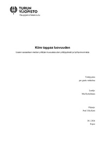 Sosiaalisen median monet mahdollisuudet vetävät puoleensa uusia yrittäjiä, mutta myös sosiaalisen median markkinoinnista kiinnostuneita yrityksiä. Alalla vaadittava luovuus inspiroi sisällöntuottajia luomaan esteettistä ja persoonallista sisältöä, jota yritykset voivat käyttää omiin markkinoinnin tarkoituksiin. Sosiaalisen median yrittäjyys antaa vapauden toimia itseä innostavan alan parissa, tarjoten autonomian tuomaa vapautta. Alan kasvanut kilpailu luo alalla toimiville kasvupaineita, vaatien aktiivista julkaisutahtia ja jatkuvaa trendien aallonharjalla pysymistä. Tutkimuksella pyrittiin ymmärtämään, miten tuoreet sosiaalisen median yrittäjät kuvaavat työtään, erityisesti työhyvinvoinnin näkökulmasta. Tutkimuksen tavoite on myös ymmärtää työn kuvauksen lisäksi, millaisia merkittävimpiä kuormitus- ja palkitsevuustekijöitä alalla toimivat kohtaavat työssään. Tutkimuksen kohderyhmänä toimii sosiaalisen median vaikuttajina, UGC-sisällöntuottajina ja sosiaalisen median managereina toimivat pää- tai sivutoimiset yrittäjät.