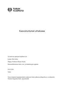 Syventävien opintojen kirjallisen työn aiheena oli kasvomurtumat urheilussa. Tavoitteena oli selvittää urheiluperäisten kasvomurtumien yleisyys, etiologia ja urheilulajien väliset erot murtumien syntytavoissa. Työ toteutettiin kirjallisuuskatsauksena PubMedin aineistoja hyödyntäen.