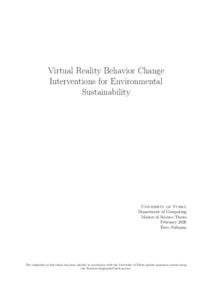 Climate change is a pressing issue where dominant research modes have not provided sufficient solutions for endeavors such as affecting sustainable behavior. Contemporary technological advances may provide new solutions when studied through multidisciplinary analysis. The use of virtual reality for this purpose has great potential, explored in this thesis as a medium for changing the behavior related to environmental sustainability of individuals and groups.