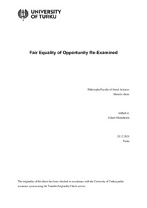(28.12.2025)Equality of Opportunity is a field of ethical study concerned with the processes through which citizens acquire important abilities and social positions within a society. Several potential theories in the field exist and ...avoin -