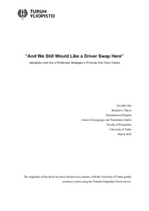 (24.03.2026)This thesis investigates the application of politeness strategies in how team orders are communicated in Formula One. The goals of this study were to find out the type of strategies used and whether they influenced driver ...avoin -