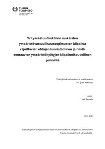 Yritysvastuudirektiivin mukaisten ympäristövastuullisuussopimusten kilpailua rajoittavien ehtojen tunnistaminen ja niistä seuraavien ympäristöhyötyjen kilpailuoikeudellinen punninta