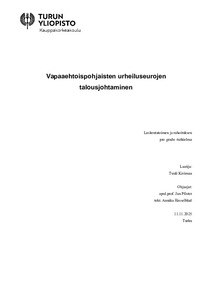 (04.12.2025)Tutkielmassa analysoidaan, miten sisäiset ja ulkoiset olosuhteet selittävät talousjohtamista vapaaehtoispohjaisissa urheiluseuroissa. Tutkimus syventyy erityisesti seurojen toimintaympäristöihin ja siihen, miten seurojen ...avoin -