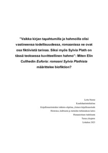 ”Vaikka kirjan tapahtumilla ja hahmoilla olisi vastineensa todellisuudessa, romaanissa ne ovat osa fiktiivistä tarinaa. Siksi myös Sylvia Plath on tässä teoksessa kuvitteellinen hahmo”: Miten Elin Cullhedin Euforia: romaani Sylvia Plathista määrittelee biofiktion?