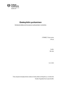 (21.12.2025)Tässä ON-opinnäytetyössä käsittelen osakeyhtiön purkamista selvitysmenettelyn kautta ja osakeyhtiön purkautumisesta koituvia veroseuraamuksia purettavalle yhtiölle ja yhtiön jako-osuuksien saajille. Osakeyhtiön perustaminen ...avoin -