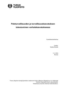 (19.02.2026)Tutkimuksessa selvitettiin paloturvallisuuden ja turvallisuusharjoitusten toteutumista varhaiskasvatuksessa. Tarkastelun kohteena olivat varhaiskasvatuksen työntekijöiden valmiudet toimia hätätilanteissa, erityisesti ...avoin -