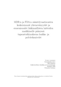 MDR:n ja FDA:n sääntelyvaatimusten keskeisimmät yhteneväisyydet ja eroavaisuudet lääkinnällisten laitteiden markkinoille pääsyssä: tapaustutkimuksena lonkka- ja polvitekonivelet