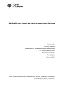 (28.11.2025)Tutkielma käsittelee kielisuihkutuksen vaikutuksia varhaiskasvatuksessa. Kielisuihkutus tarkoittaa leikinomaisia tuokioita, joissa lapsille esitellään vieraita kieliä ilman varsinaista oppimistavoitetta tavoitteena herättää ...avoin -