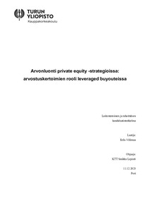 (12.12.2025)Tutkielman tavoitteena on analysoida arvostuskertoimien roolia leveraged buyout -järjestelyissä ja tarkastella, milloin arvostuskertoimien nousu heijastaa todellista arvonluontia ja milloin kyse on pikemminkin arvonsiirrosta. ...avoin -