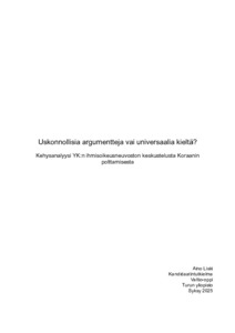 Uskonnollisia argumentteja vai universaalia kieltä? : Kehysanalyysi YK:n ihmisoikeusneuvoston keskustelusta Koraanin polttamisesta