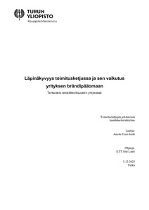 (09.12.2025)Tässä kandidaatintutkielmassa tarkastellaan toimitusketjun läpinäkyvyyden vaikutuksia yrityksen brändipääoman muodostumiseen. Tutkielma on rajattu koskemaan erästä nyky-yhteiskuntamme merkittävintä toimialaa eli ...avoin -