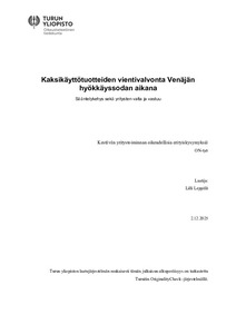 (11.12.2025)Tässä ON-työssä tarkastellaan kaksikäyttötuotteiden vientivalvontaa Ukrainan sodan aikana. Aihe- ja kohderajauksena ovat Suomesta Venäjälle päätyneet kaksikäyttötuotteet, ja ajallinen rajaus alkaa päivämäärästä 24.2.2022, ...avoin -