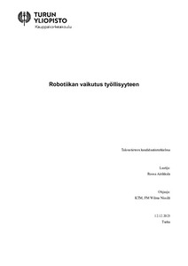(07.01.2026)Tutkielmassa tarkastellaan robotiikan vaikutuksia työllisyyteen. Kiinnostuksen kohteena on, miten robotiikan käyttöönotto muuttaa työllisyyttä, erityisesti työvoiman kysyntää sekä työn tehtävärakenteita. Erityistä huomiota ...avoin -