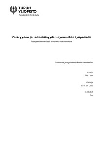 (19.12.2025)Tämän kandidaatintutkielman tavoitteena on tarkastella, miten esihenkilön ja alaisen välinen ystävyyssuhde vaikuttaa työn voimavaroihin ja kuormitustekijöihin sekä millaisessa roolissa valta ja valtaetäisyys ovat näiden ...avoin -