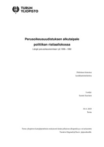 (23.12.2025)Tutkielma käsittelee perusoikeusuudistuksen ensimmäistä, vuosina 1989–1992 toteutettua vaihetta, sekä sen suhteutumista ajan poliittisiin murroksiin. Perusoikeusuudistuksen ensimmäistä vaihetta toteutti puheenjohtaja Karl ...avoin -