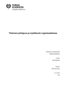 (30.12.2025)Tämä tutkielma tarkastelee Pygmalion-efektiä, jolla tarkoitetaan sitä, että johtajan korkeat odotukset alaistaan kohtaan voivat edistää alaisen työssä suoriutumista. Tutkin Pygmalion-efektin kehittymistä suhteen kummankin ...suljettu -