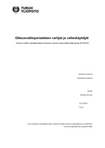 (30.12.2025)Tämä tutkielma käsittelee Euroopan unionin oikeusvaltiomekanismia (Regulation 2020/2092) Puolan ja Unkarin sitä vastaan esittämien argumenttien pohjalta. Tarkastelun ajanjakso ajoittuu vuosille 2018-2021, jotka kattavat ...avoin -