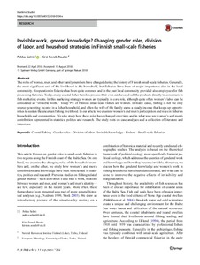 Invisible work, ignored knowledge? Changing gender roles, division of labor, and household strategies in Finnish small-scale fisheries