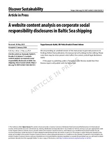 A Website Content Analysis on Corporate Social Responsibility Disclosures in Baltic Sea Shipping