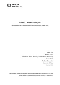 (10.10.2025)In this thesis, I approach and analyze sadomasochistic aesthetics that are manifest in the field of popular multimodal culture and specifically popular music culture. The aim is to analyze, through the employment of cultural ...avoin -