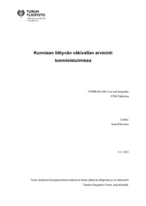 (10.11.2025)Tässä tutkielmassa tarkastellaan kunniaan liittyvän väkivallan käsittelyä suomalaisissa tuomioistuimissa ja erityisesti sitä, miten tuomioistuimet ottavat huomioon kunniamotiivin ja miten se vaikuttaa rangaistuksen ...avoin -