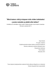 (30.11.2025)Pro gradu -tutkielmassani analysoin Jenna Kostetin Pikimusta, sysipimeä -romaanin (2017) inhimillisen ja ei-inhimillisen välisten rajojen uudelleenkuvittelua. Perehdyn samalla siihen, miten suomalainen kansanperinne kietoutuu ...avoin -