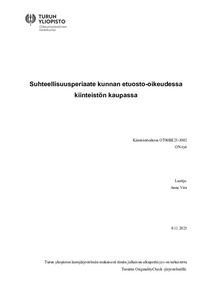 (01.12.2025)Tutkielman aiheena on tarkastella suhteellisuusperiaatteen merkitystä kunnan etuosto-oikeudessa kiinteistön kaupassa. Kunnan etuosto-oikeudesta säännellään etuostolaissa, ja sillä tarkoitetaan kunnan käytössä olevaa ...avoin -