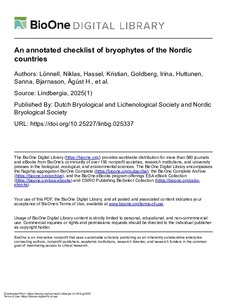 We present an updated checklist for all bryophyte species known to occur in the Nordic countries and list occurrences for each taxon from Iceland, the Faroe Islands, Denmark, Svalbard, Jan Mayen, Norway (mainland), Sweden ... -