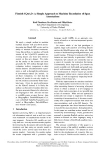 <p>We apply a simple method to machine translate datasets with span-level annotation using the DeepL MT service and its ability to translate formatted documents. Using this method, we produce a Finnish version of the ... -