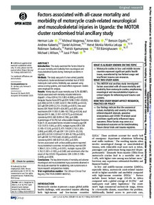 Factors associated with all-cause mortality and morbidity of motorcycle crash-related neurological and musculoskeletal injuries in Uganda: the MOTOR cluster randomised trial ancillary study